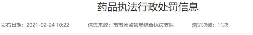 1 | 濟(jì)市監(jiān)罰字〔2020〕0710號 | 濟(jì)南開心大藥店有限公司 | 91370105589934577P | 銷售劣藥“海風(fēng)藤” | 《中華人民共和國藥品管理法》(2015年修正版)第七十四條 | 1.沒收違法所得29.28元; 2.處違法銷售藥品貨值金額2倍的罰款80元。 (罰沒款合計(jì)109.28元) | 濟(jì)南市市場監(jiān)督管理局 | 11370100MB28696235 | 2021年2月9日 |