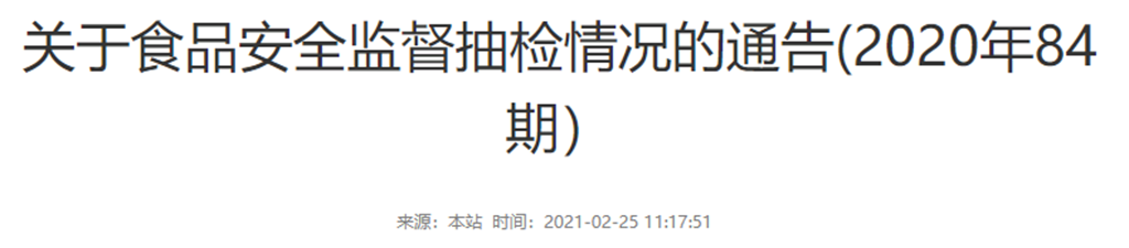 關(guān)于食品安全監(jiān)督抽檢情況的通告(2020年84期)