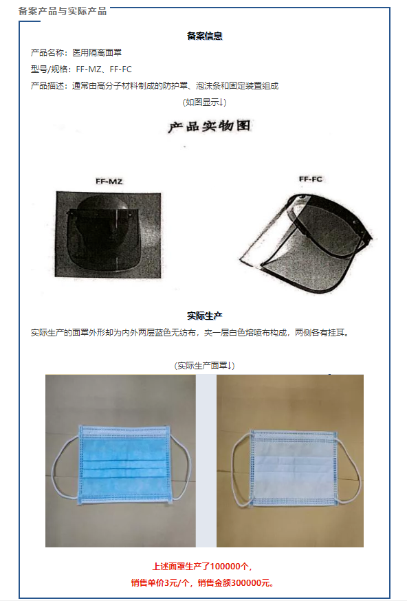 面罩變口罩,該公司生產(chǎn)的面罩與備案的產(chǎn)品技術(shù)要求明顯不符,其行為違反了《醫(yī)療器械監(jiān)督管理?xiàng)l例》第二十四條第一款之規(guī)定。