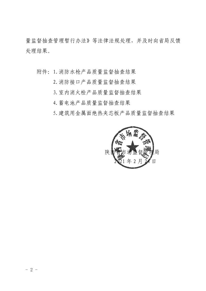 關(guān)于公布2020年消防水槍等5種產(chǎn)品質(zhì)量專項(xiàng)監(jiān)督抽查結(jié)果的通告