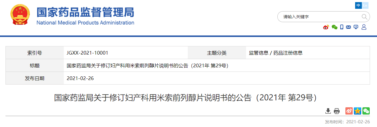 為進一步保障公眾用藥安全,國家藥品監(jiān)督管理局決定對婦產(chǎn)科用米索前列醇片說明書進行修訂?,F(xiàn)將有關事項公告如下: