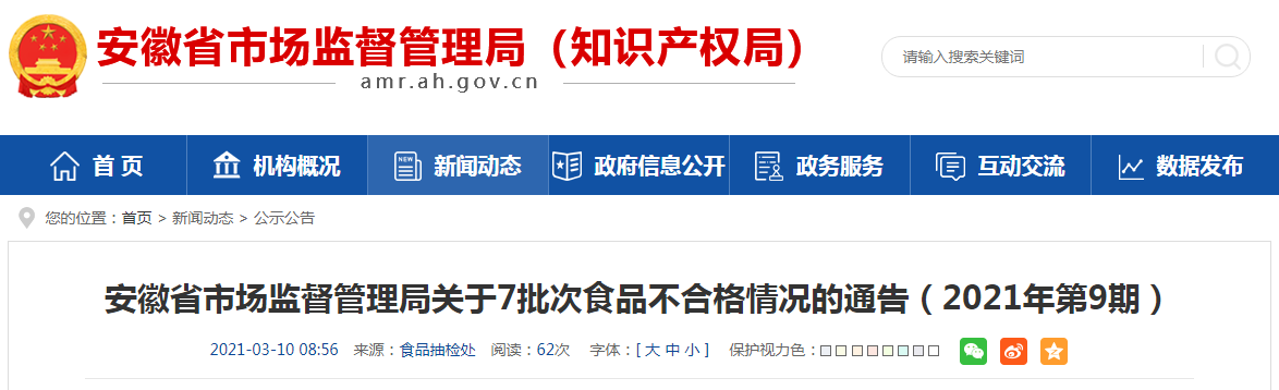 中國(guó)質(zhì)量新聞網(wǎng)訊 (記者 徐遠(yuǎn)官) 3月10日,安徽省市場(chǎng)監(jiān)督管理局網(wǎng)站發(fā)布2021年第9期食品抽檢信息。本次抽檢茶葉及相關(guān)制品、食用農(nóng)產(chǎn)品、糧食加工品3類(lèi)食品,其中食用農(nóng)產(chǎn)品5批次不合格、130批次合格。合格產(chǎn)品信息如下: