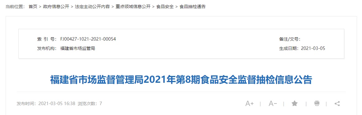 福建省市場(chǎng)監(jiān)督管理局已要求所在地市場(chǎng)監(jiān)管部門對(duì)不合格食品生產(chǎn)經(jīng)營(yíng)者進(jìn)行調(diào)查處置,依法查處違法違規(guī)行為,督促生產(chǎn)經(jīng)營(yíng)者履行停止銷售、下架、召回等法定義務(wù),防控食品安全風(fēng)險(xiǎn)。