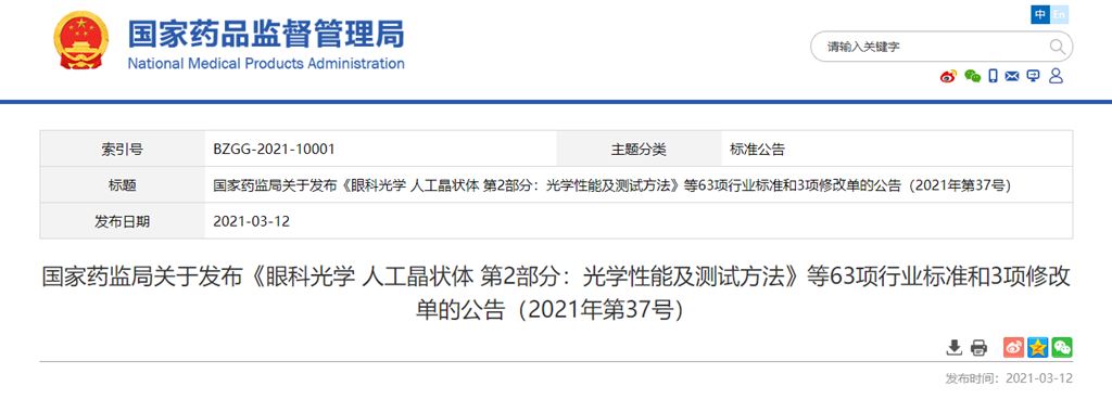YY 0290.2—2021《眼科光學(xué) 人工晶狀體 第2部分:光學(xué)性能及測(cè)試方法》等63項(xiàng)行業(yè)標(biāo)準(zhǔn)和YY 0676—2008《眼科儀器視野計(jì)》等3項(xiàng)行業(yè)標(biāo)準(zhǔn)修改單已經(jīng)審定通過(guò),現(xiàn)予以公布。標(biāo)準(zhǔn)編號(hào)、名稱、適用范圍、實(shí)施日期和修改單內(nèi)容見(jiàn)附件。