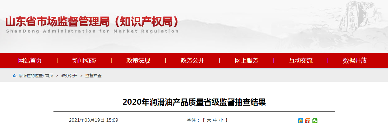 中國質量新聞網訊 (記者 徐遠官) 2021年3月19日,山東省市場監(jiān)督管理局網站公布2020年潤滑油產品質量省級監(jiān)督抽查結果。本次共抽查了全省41家企業(yè)生產/銷售的61批次潤滑油產品,其中,生產領域38家企業(yè)57批次,流通領域3家企業(yè)4批次。發(fā)現4批次產品不符合相關標準的要求,不合格項目為低溫動力黏度、泡沫性項目。