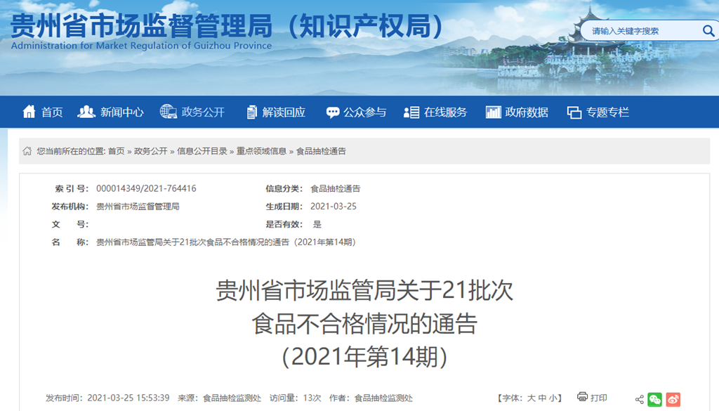 中國(guó)質(zhì)量新聞網(wǎng)訊 2021年3月25日,貴州省市場(chǎng)監(jiān)管局網(wǎng)站發(fā)布2021年第14期食品抽檢情況的通告。通告顯示,本期抽檢糧食加工品197批次,其中合格196批次,不合格1批次。合格產(chǎn)品信息如下: