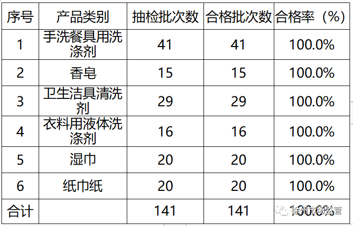 本次抽查包括手洗餐具用洗滌劑、香皂、衛(wèi)生潔具清洗劑、衣料用液體洗滌劑、濕巾和紙巾紙等6大類家用產(chǎn)品,抽查范圍覆蓋全市范圍的主要銷售企業(yè),共抽查疫情防控相關(guān)日用消費(fèi)品141批次。