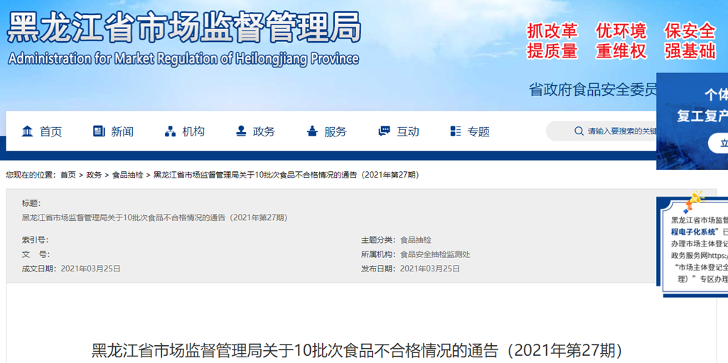 中國質(zhì)量新聞網(wǎng)訊 近日,黑龍江省市場監(jiān)督管理局發(fā)布2021年第27期食品抽檢情況通告。通告顯示,該期抽檢飲料59批次全部合格。合格產(chǎn)品信息如下: