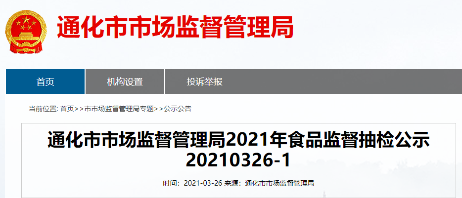 中國質(zhì)量新聞網(wǎng)訊 吉林省通化市市場監(jiān)督管理局網(wǎng)站3月26日刊登2021年食品監(jiān)督抽檢公示20210326-1。
