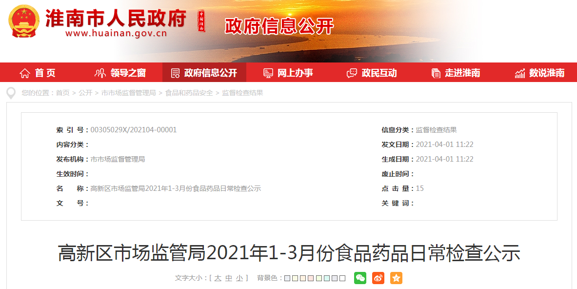中國(guó)質(zhì)量新聞網(wǎng)訊 近日,安徽省淮南市高新區(qū)市場(chǎng)監(jiān)管局公示2021年1-3月份食品藥品日常檢查結(jié)果。