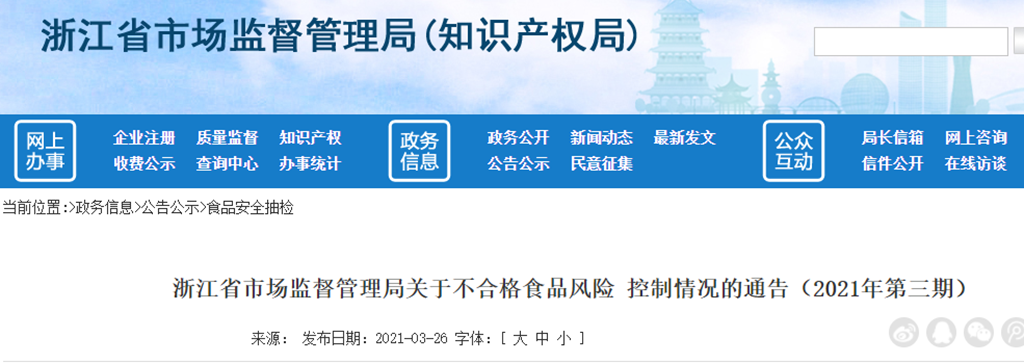 中國質(zhì)量新聞網(wǎng)訊 近日,浙江省市場(chǎng)監(jiān)督管理局發(fā)布關(guān)于不合格食品風(fēng)險(xiǎn)控制情況的通告(2021年第三期)。其中涉及阿里巴巴(網(wǎng)店)銷售的三鮮薯?xiàng)l膨化食品,不合格食品風(fēng)險(xiǎn)控制情況如下: