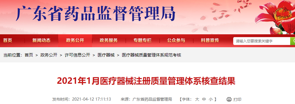 中國(guó)質(zhì)量新聞網(wǎng)訊 廣東省藥監(jiān)局網(wǎng)站4月12日發(fā)布2021年1月醫(yī)療器械注冊(cè)質(zhì)量管理體系核查結(jié)果。詳情見(jiàn)下表。