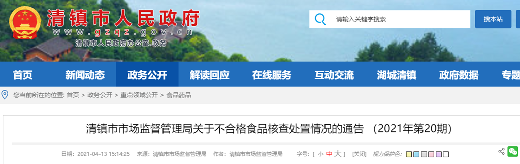 清鎮(zhèn)市市場監(jiān)督管理局關(guān)于不合格食品核查處置情況的通告(2021年第20期)