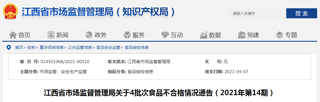 中國質(zhì)量新聞網(wǎng)訊 日前,江西省市場監(jiān)督管理局發(fā)布2021年第14期食品抽檢信息。近期,該局組織食品安全監(jiān)督抽檢蛋制品、乳制品、餐飲食品、水產(chǎn)制品、蔬菜制品、調(diào)味品、食品添加劑和飲料8大類食品共274批次食品。其中,抽檢飲料12批次,合格11批次,不合格1批次。合格產(chǎn)品信息見下表。