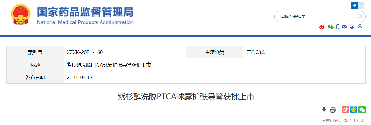 近日,國家藥品監(jiān)督管理局經(jīng)審查,批準了浙江巴泰醫(yī)療科技有限公司生產(chǎn)的創(chuàng)新產(chǎn)品“紫杉醇洗脫PTCA球囊擴張導(dǎo)管”注冊。