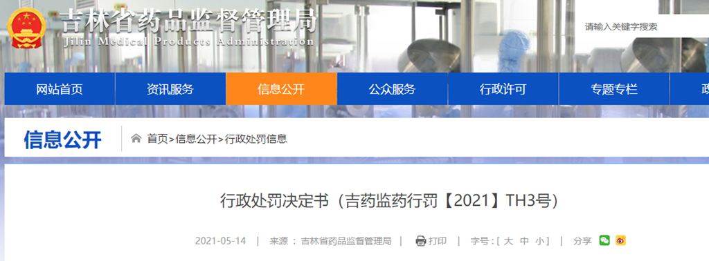 行政處罰決定書(吉藥監(jiān)藥行罰【2021】TH3號(hào))