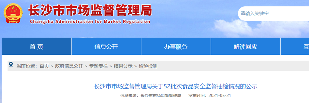 長(zhǎng)沙市市場(chǎng)監(jiān)督管理局關(guān)于52批次食品安全監(jiān)督抽檢情況的公示