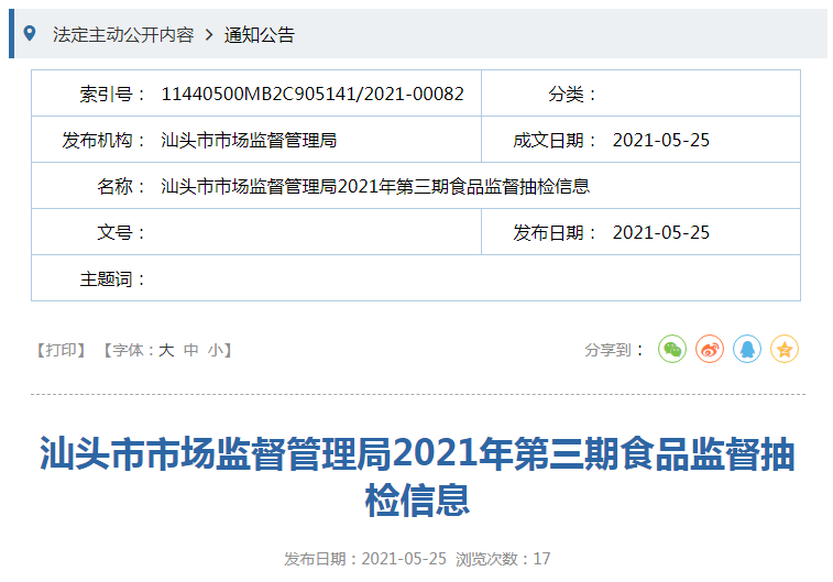 中國質(zhì)量新聞網(wǎng)訊 近期,廣東省汕頭市市場監(jiān)督管理局對(duì)轄區(qū)內(nèi)的食品生產(chǎn)企業(yè)、流通環(huán)節(jié)進(jìn)行食品安全監(jiān)督抽樣檢驗(yàn),從2021年3月30日到2021年5月6日共完成食品抽檢733批次,合格731批次,不合格2批次。其中1批次“豬肉脯(XO醬味)”菌落總數(shù)項(xiàng)目不符合標(biāo)準(zhǔn)要求。具體信息如下: