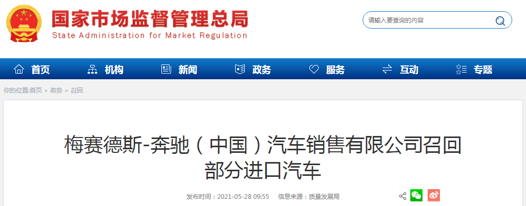 梅賽德斯-奔馳(中國(guó))汽車銷售有限公司召回部分進(jìn)口汽車