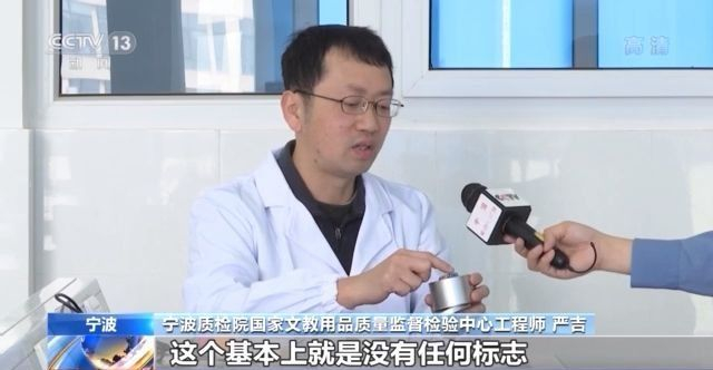 寧波質(zhì)檢院國(guó)家文教用品質(zhì)量監(jiān)督檢驗(yàn)中心工程師 嚴(yán)吉:這個(gè)基本上就是沒有任何標(biāo)志的“三無”產(chǎn)品,主要原因可能是企業(yè)對(duì)產(chǎn)品的標(biāo)準(zhǔn)不夠熟悉,然后也可能不想失去特定的消費(fèi)群體,所以特意地不去標(biāo)注出來。