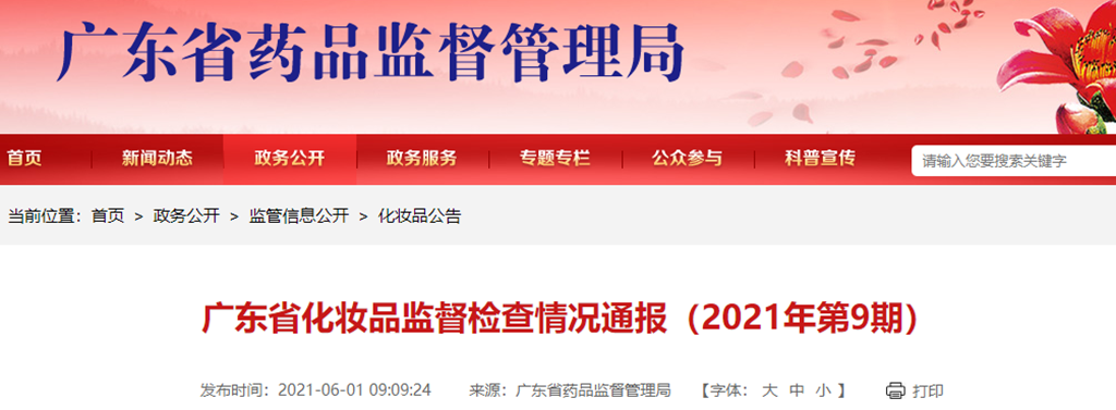 中國質(zhì)量新聞網(wǎng)訊 廣東省藥品監(jiān)督管理局網(wǎng)站6月1日發(fā)布廣東省化妝品監(jiān)督檢查情況通報(bào)(2021年第9期)。