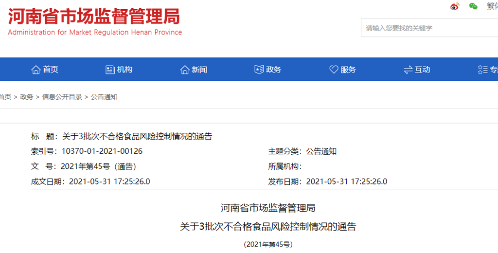 關(guān)于3批次不合格食品風(fēng)險(xiǎn)控制情況的通告