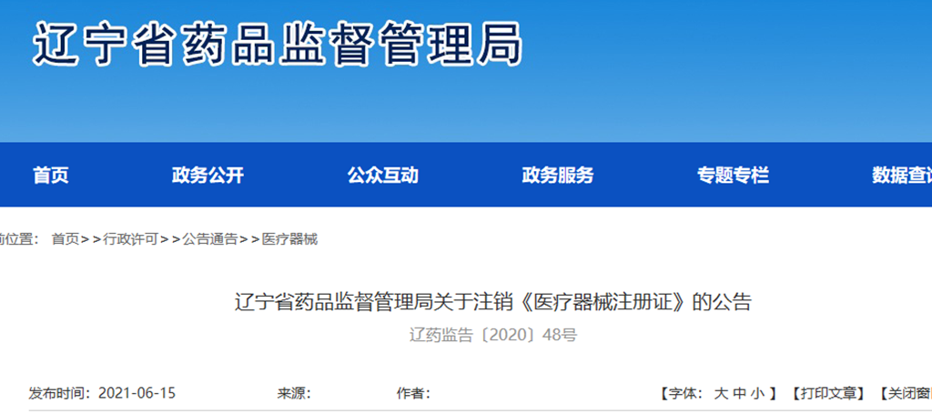 遼寧省藥品監(jiān)督管理局關(guān)于注銷《醫(yī)療器械注冊(cè)證》的公告