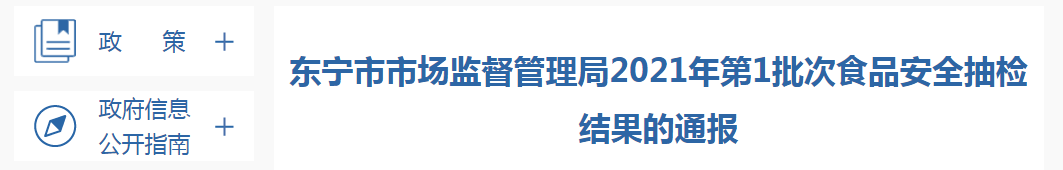 中國質量新聞網(wǎng)訊 近日,黑龍江省東寧市人民政府網(wǎng)站發(fā)布了東寧市市場監(jiān)督管理局2021年第1批次食品安全抽檢結果的通報。