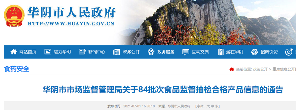 華陰市市場(chǎng)監(jiān)督管理局關(guān)于84批次食品監(jiān)督抽檢合格產(chǎn)品信息的通告