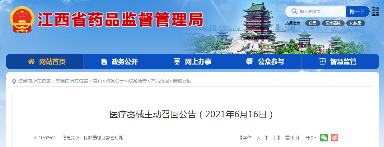 中國質量新聞網訊 2021年7月8日,江西省藥品監(jiān)督管理局網站發(fā)布醫(yī)療器械主動召回公告(2021年6月16日)。據公告,南昌市朝陽醫(yī)療保健用品有限公司主動召回醫(yī)用外科口罩。