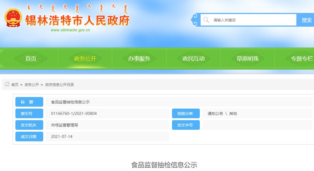 | XC21152500181700090 | 20 | 錫林浩特市中文豆腐坊 | 內(nèi)蒙古 | 黃豆芽 | 散裝 | 2021-01-26 | 食用農(nóng)產(chǎn)品 | 錫林浩特市市場監(jiān)督管理局 | |