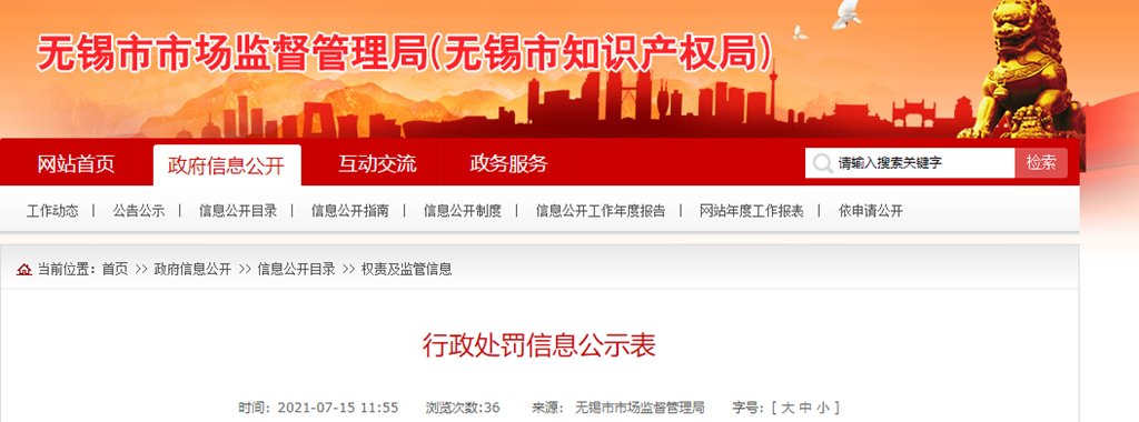 中國(guó)質(zhì)量新聞網(wǎng)訊 近日,江蘇省無錫市市場(chǎng)監(jiān)督管理局發(fā)布行政處罰信息公示表。詳情見下表。