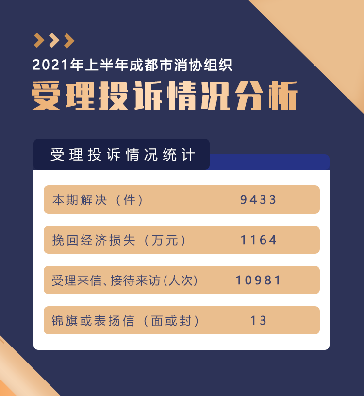 中國(guó)質(zhì)量新聞網(wǎng)訊 四川省成都市消協(xié)2021年上半年受理解決消費(fèi)者投訴9433件,接待來(lái)訪和咨詢10981人次,挽回經(jīng)濟(jì)損失1100余萬(wàn)元。投訴熱點(diǎn)主要有預(yù)付式消費(fèi)、教育培訓(xùn)、食品及保健食品、旅游消費(fèi)。