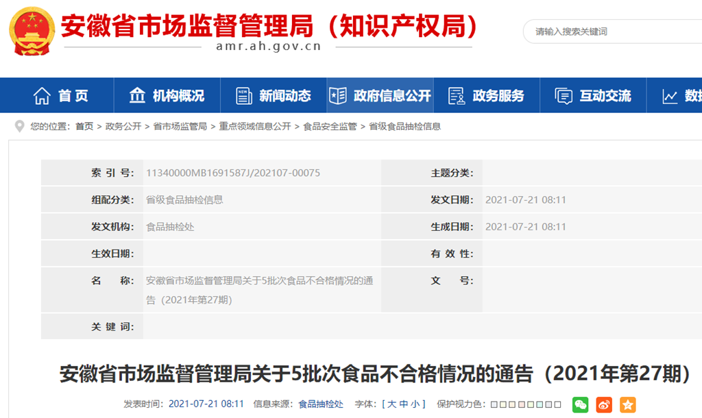 中國質(zhì)量新聞網(wǎng)訊 近期,安徽省市場監(jiān)督管理局組織抽檢茶葉及相關(guān)制品、糕點(diǎn)、飲料、糖果制品等4類食品434批次樣品。根據(jù)食品安全國家標(biāo)準(zhǔn)檢驗(yàn)和判定,其中抽樣檢驗(yàn)項(xiàng)目合格樣品429批次、不合格樣品5批次(見附件),不合格樣品涉及微生物指標(biāo)、農(nóng)獸藥殘留等問題。