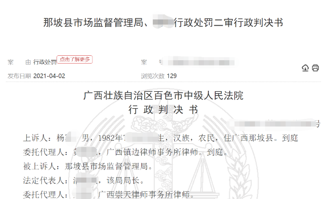 8月11日,那坡縣市場監(jiān)督管理局稱,該局對楊某向社會公眾銷售私自宰殺未經(jīng)檢驗、檢疫生豬產(chǎn)品的違法行為,進行行政處罰的決定獲得法院支持。經(jīng)百色市中級人民法院審判,楊某敗訴。