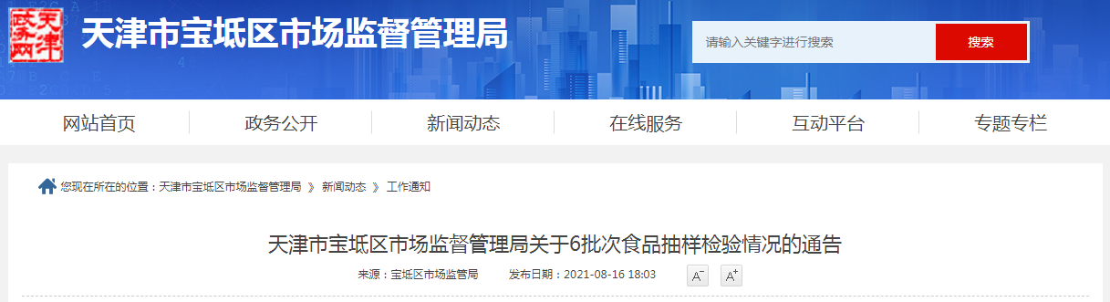 中國質(zhì)量新聞網(wǎng)訊 8月16日,天津市寶坻區(qū)市場監(jiān)督管理局網(wǎng)站發(fā)布關(guān)于6批次食品抽樣檢驗(yàn)情況的通告。通告稱,為加強(qiáng)寶坻區(qū)“放心肉菜示范超市”食品安全監(jiān)管,排查風(fēng)險(xiǎn)隱患,2021年7月份,該局組織對天津勸寶超市有限責(zé)任公司購物廣場6批次食用農(nóng)產(chǎn)品進(jìn)行了抽樣檢驗(yàn),檢驗(yàn)結(jié)果顯示,所檢樣品受檢指標(biāo)全部合格。