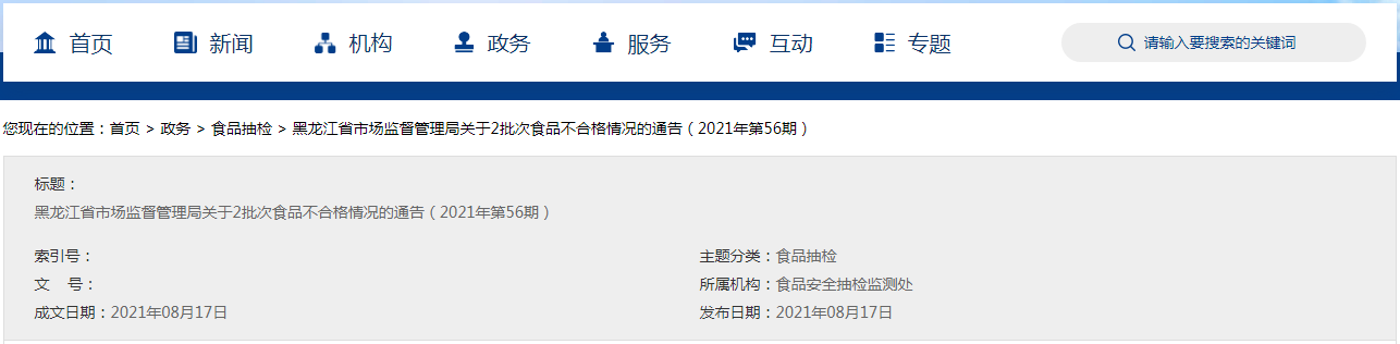中國質(zhì)量新聞網(wǎng)訊 8月17日,黑龍江省市場監(jiān)督管理局網(wǎng)站發(fā)布關(guān)于2批次食品不合格情況的通告(2021年第56期)。為切實保障學(xué)校、幼兒園及養(yǎng)老機構(gòu)食堂等就餐安全,回應(yīng)社會關(guān)切,該局組織對全省大型配餐單位、學(xué)校、幼兒園和養(yǎng)老機構(gòu)食堂采購的大宗食材、餐飲自制食品及校園周邊流通環(huán)節(jié)銷售的食品開展專項抽檢,目前已完成了食品安全監(jiān)督抽檢任務(wù)757批次,涉及調(diào)味品、食用農(nóng)產(chǎn)品、糕點等11類食品。根據(jù)食品安全國家標準檢驗和判定,其中合格樣品755批次,不合格樣品2批次。不合格項目主要是質(zhì)量指標不達標、農(nóng)藥殘留超標。具體情況如下: