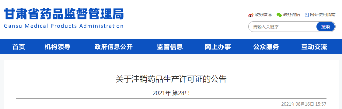 中國質(zhì)量新聞網(wǎng)訊 8月16日,甘肅省藥品監(jiān)督管理局網(wǎng)站發(fā)布關(guān)于注銷藥品生產(chǎn)許可證的公告(2021年 第28號)。公告稱,經(jīng)會寧縣合源藥業(yè)發(fā)展有限公司申請,根據(jù)《行政許可法》《藥品生產(chǎn)監(jiān)督管理辦法(試行)》等相關(guān)規(guī)定,現(xiàn)予以核準(zhǔn)注銷該企業(yè)的《藥品生產(chǎn)許可證》。