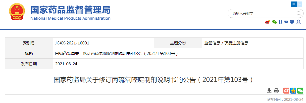 國家藥監(jiān)局關(guān)于修訂丙硫氧嘧啶制劑說明書的公告(2021年第103號)