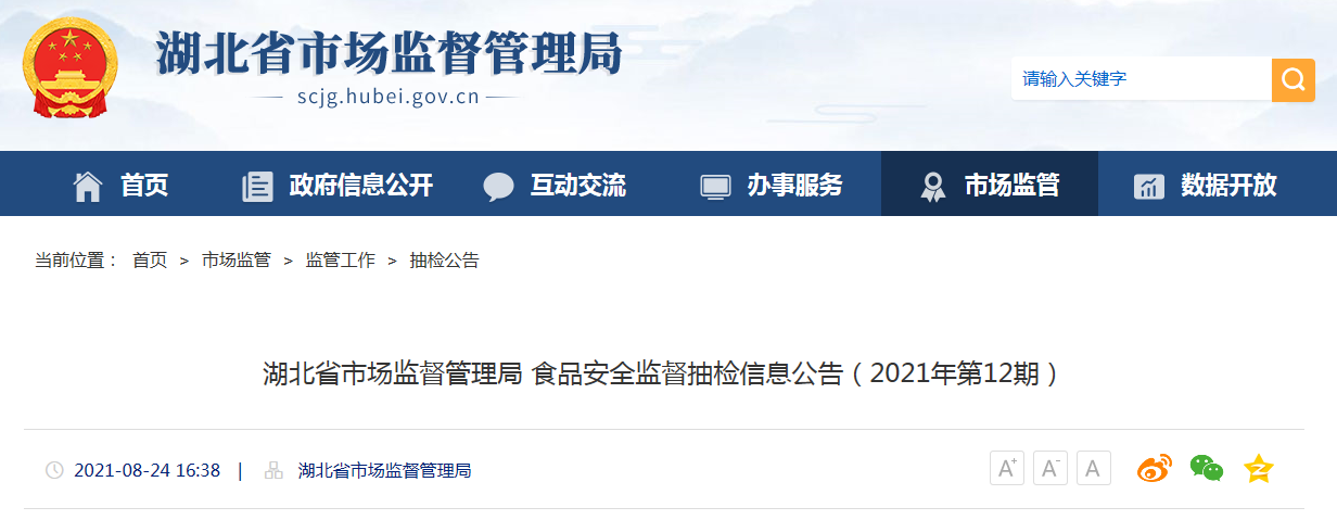 湖北省市場監(jiān)管局發(fā)布2021年第12期食品安全監(jiān)督抽檢信息