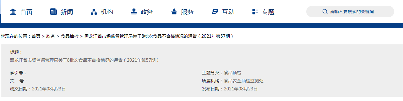 中國(guó)質(zhì)量新聞網(wǎng)訊 8月23日,黑龍江省市場(chǎng)監(jiān)督管理局網(wǎng)站發(fā)布2021年第57期食品抽檢信息顯示,近期,該局組織完成了食品安全監(jiān)督抽檢任務(wù)404批次,涉及食用農(nóng)產(chǎn)品、調(diào)味品、冷凍飲品等11類食品。其中,檢出2批次烤肉蘸料不合格。具體信息如下: