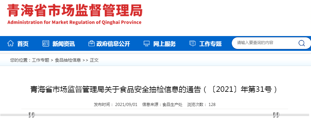中國質量新聞網訊 9月1日,青海省市場監(jiān)督管理局網站發(fā)布關于食品安全抽檢信息的通告(〔2021〕年第31號)。通告稱,近期,該局在組織開展的2021年市場監(jiān)管總局食品安全監(jiān)督抽檢專項轉移支付任務中,抽檢了淀粉及淀粉制品1批次,經檢驗,合格。