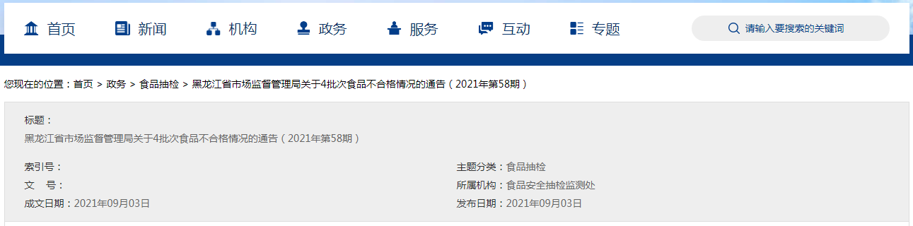 | 4 | 黑龍江省東北舍農(nóng)副食品有限公司 | 哈爾濱市雙城區(qū)樂群鄉(xiāng)富勤村 | 寧安市傲矯龍超市有限公司 | 黑龍江 | 酸味腌漬菜 | 500克/袋 | 2021/6/18 |
