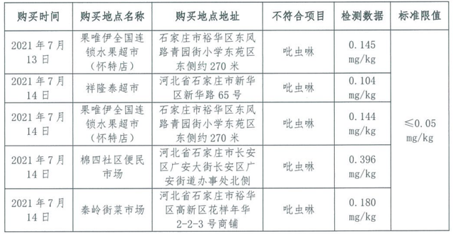 吡蟲啉項目有8批次樣品檢出,3批次檢出數(shù)值符合標準要求,5批次樣品檢出數(shù)值不符合標準要求。