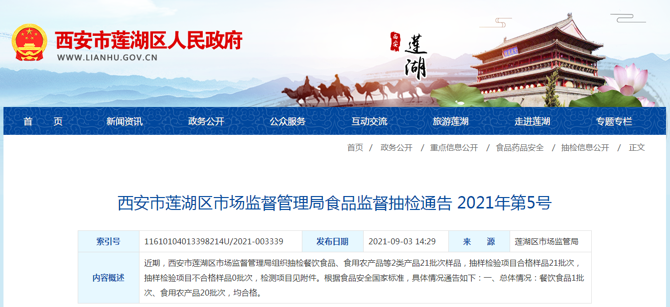 中國(guó)質(zhì)量新聞網(wǎng)訊 近日,西安市蓮湖區(qū)市場(chǎng)監(jiān)督管理局發(fā)布食品監(jiān)督抽檢通告(2021年第5號(hào))。通告稱,近期,該局組織抽檢餐飲食品、食用農(nóng)產(chǎn)品2類產(chǎn)品,其中餐飲食品1批次、食用農(nóng)產(chǎn)品20批次,均合格。