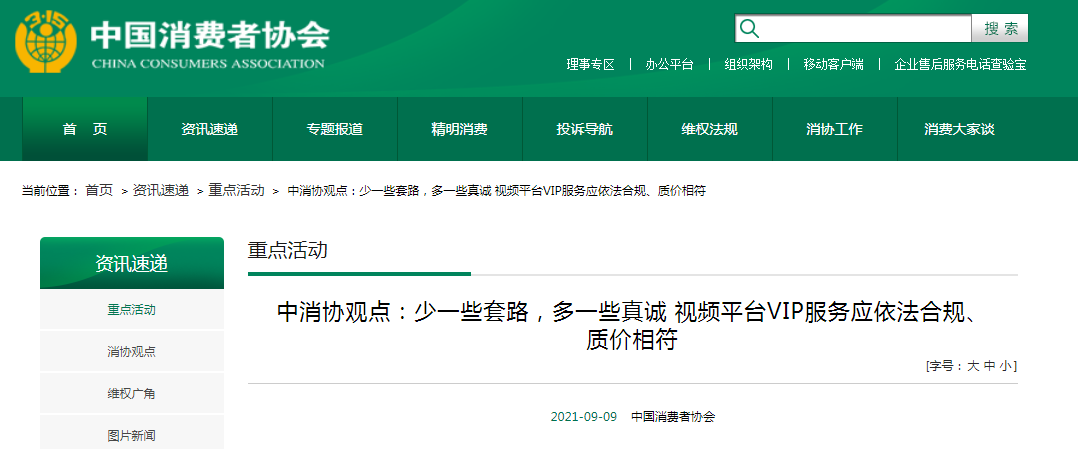 中消協(xié)認(rèn)為,視頻平臺貼合用戶需求,提供VIP會員服務(wù),應(yīng)當(dāng)尊重廣大消費(fèi)者,恪守誠信原則,遵守法律規(guī)定,杜絕唯利是圖,違法欺客,霸王條款。希望各視頻平臺經(jīng)營者認(rèn)真自查,主動整改,少一些套路、多一些真誠,依法承擔(dān)應(yīng)盡義務(wù)和責(zé)任,切實(shí)保障消費(fèi)者合法權(quán)益,真正在完善用戶體驗(yàn)方面下功夫,讓消費(fèi)者花的每一分錢,都能得到質(zhì)價相符的應(yīng)有回饋。