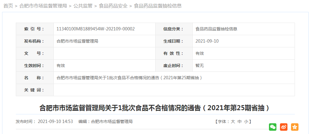 中國質(zhì)量新聞網(wǎng)訊 近日,合肥市市場監(jiān)督管理局發(fā)布的2021年第25期省抽食品抽檢信息顯示,近期,該局組織抽檢糕點、食用油、油脂及其制品等2類食品49批次樣品。其中,抽檢15批次糕點,1批次不合格、14批次合格。