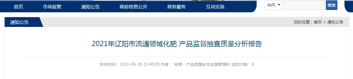 2021年遼陽市流通領(lǐng)域化肥產(chǎn)品質(zhì)量監(jiān)督抽查結(jié)果