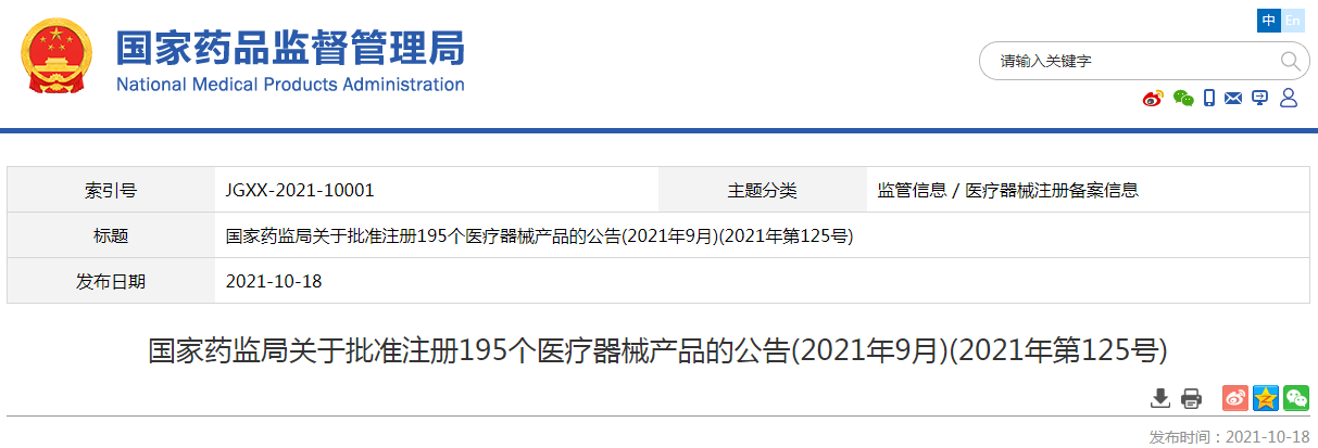 2021年9月批準(zhǔn)注冊醫(yī)療器械產(chǎn)品目錄