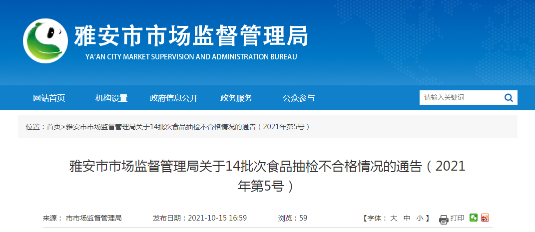 | 6 | / | / | 石棉縣陽陽肥腸店 | 石棉縣新棉鎮(zhèn)文化路三段54號(hào) | 碗 | / | / | 2021/8/10 | 大腸菌群,/50cm2║檢出 ║不得檢出 | 餐飲食品 | 四川省市場(chǎng)監(jiān)督管理局/抽檢監(jiān)測(cè)(省級(jí)轉(zhuǎn)移)2021年四川省級(jí)常規(guī)普通食品抽檢計(jì)劃 | 雅安市產(chǎn)品質(zhì)量檢驗(yàn)檢測(cè)中心 | ||
